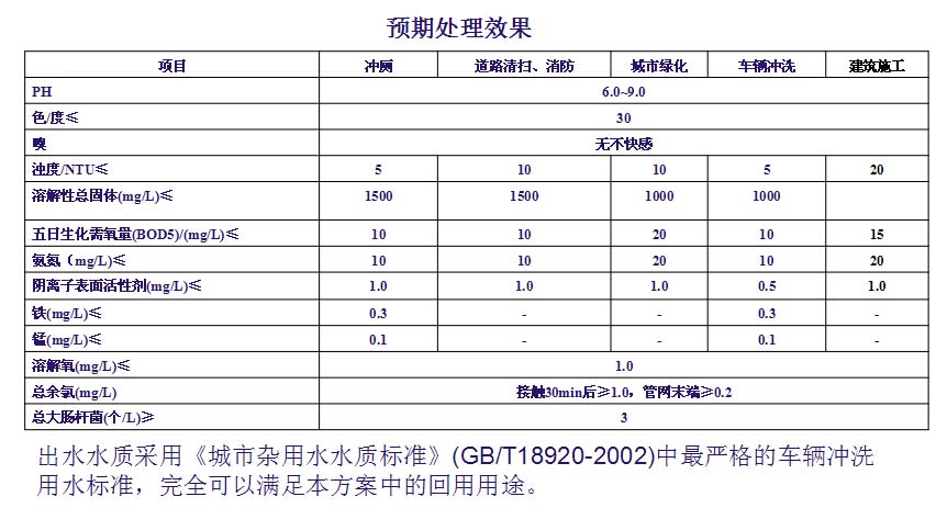 由上述原因可知,本項目絕不能給圭塘河帶來新的污染源,所以本工程項目生產廢水經處理后達到雜用水水質標準全部回用,實現項目的污水零排放;在特殊條件下(雨季連續暴雨)廢水經處理達到《城鎮污水處理廠污染物排放標準》一級A標準排入花橋污水處理廠。